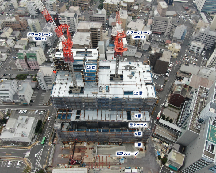 15階までの鉄骨躯体工事施工中です